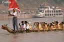 However, we had stayed to watch in Vientiane. Our tuk tuk driver had taken us out to Friendship Bridge, and on the way back I noticed what I thought was a crew boat whizzing along the Mekong. We stopped and walked back to a cold drink stand in front of a house on the river side of the road. The driver asked the owner if he had seen the boat - he had - and said it should be back in five minutes or so. We drank and waited, and sureenough, a few minutes later the boat came back, making unbelievable speed upriver. Our host said they practiced 4-5 hours a day and now were doing especially well because there were races coming up in a couple of weeks. So now knowing what we have learned about the timing of the races in Hoi An, Vietnam, I assume that timing was similar in Laos. It would have been fun to see the full-dress finale, but watching those hard-working young men in the Mekong may have given us a fuller appreciation of the effort involved.