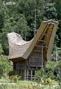 As in other parts of Indonesia, the architecture of the traditional Toreja houses distinctive. In this case, the story is that the people originally came from Indo-China in boats, and when they arrived they needed a place to stay, so they brought their boats ashore and stayed in them. Now traditional houses are made with roofs in the shape of boats, which are reminiscent of the West Sumatran Minangkumbau roofs in sweep, but not in detail. The houses are build up on stilts, some say against the crocodiles that sometimes come out of the rivers, but others say it's to keep the wood of the main house dry for longevity. the multi-layered bamboo roofs last fifty years, we're told! Only high caste Torajans now live in traditional houses because of both expense and tradition, but the majority of people of all castes now live in modern, Java-style brick and stucco houses with corrugated metal roofs. A traditional Toraja village has houses that all face north, toward the ancestral land, and that each have a number of rice barns across the road from the main house. In addition to space for rice storage, the rice barns provide a welcoming space for guests. The platform part way up the barn's stilts is used for guests to gather on and be served beverages before being invited into the main house. the guide who took us through Tana Toraja, Roby, said when he goes home to his parent's house he is pleased to be still sleeping in a traditional Toraja home.