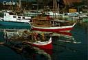 Friday morning we flew from Ujun Pandang to Manado in north Sulawesi, heading for some relaxing beaching (which gives the impression what we've been doing is not relaxing, entirely untrue). According to folks we've talked to, off the shore of Manado, Bunaken Island has snorkeling as good as Australia's Great Barrier Reef, some of the absolute best in the world. We've only snorkeled once, several years ago in Hawaii, but it was beautiful and fun. We arrived in Manado and took a taxi straight from the airport to the public boat dock to catch an outrigger to Palau Bunaken. As usual with Indonesian public transportation, we needed to wait until the conveyance was full before leaving the port, giving us plenty of time to view our surroundings. The cab had left us off in a bustling market on the edge of a river (as many seem to be), and the river's mouth was lined with concrete retaining walls with narrow steps going down to water level. The walls and steps were not in good repair, se we'd made our way gingerly down to the boat. Our boat was about 30' long, 8' wide with benches lengthwise along each side of the hull. the bow was covered with some boards so people could sit there, but the largest part of the boat had a wooden roof, providing welcome shade. The luggage - backpacks, shopping bags, fruit and chickens - was piled on the floor between our feet and spare people sat on the luggage and the roof so the trip would be profit making. When we shoved off - poled off - for the 45 minute crossing to Bunaken, we found that our craft was satisfactorily sound, with bamboo poles fitted as outriggers for balancing the moving passengers and shifting cargo, both outboard engines functioning most of the time, and persistent bailing. We disembarked on a fairly small beach on small Bunaken Island, and I checked out the [something cut off here - alan] places available along the beach. We selected Bastiano's Cottages, probably illegally built directly on the comparatively narrow beachfront, but irresistible. Bastiano's was a group of separate little bamboo and wood cottages with attached outdoor maudis, broad verandah and only a few steps. Some of the other homestays had the cottages high up the hill above the beach, some a couple rough flights of stairs to w.c. and maudi (yucchy at night!). So we stayed in the cottages on the sand, where the waves lapped at our steps at high tide. We ate with the other travelers in the open air dining room three times a day and snorkeled for four days straight before we'd had our fill - for a while. The first day we took a small outrigger with four others and snorkeled all around our island and two neighboring islands, all three included in the national park and sanctuary encompassing this special area. Close to shore everywhere here is glorious coral reef of colorful hard and soft coral - I didn't know there was such a thing as soft coral and it's amazing! - and what we understand is the widest variety of species of fish almost anywhere. With the sun shining on the fishes and reef walls, and everything we saw more colorful than could be imagined, we felt as if we were surrounded by heaven. I also felt as if I was neglecting my self-appointed task, to learn from other peoples but decided other forms of life offered learning, too. Unfortunately, in the five days I learned little more than the names of a handful of fish. But, my goodness we had a wonderful time. Bob pronounced the place an absolute tropical paradise.