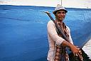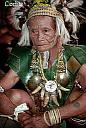 Thursday morning we flew to Balikpapan, on the southeast coast of Borneo, in the Indonesian state of Kalimantan. It was election day, and a great day to fly since most people were staying home to vote (if you were not in your hometown by Thursday to vote, you may not be able to vote, since the ease of our absentee ballot system has not yet reached Indonesia. Bus and plane travel was crammed on Wednesday but Thursday conveyances were almost empty and Jakarta airport seemed deserted.) Our intention in going to Kalimantan was to either visit the people who live in villages upriver in the interior or visit Camp Leakey, an orangutan rehabilitation center in Central Kalimantan that we read about. Unfortunately, because of limited time and money, we did neither; and contented ourselves with a brief look around industrial but pleasant Balikpapan and a rushed one-day car trip to the nearest, most westernized orang gunung village. (Orang gunung means mountain people; orang utan means forest people, a considerably different species.) Orang gunung are also called Dyaks, but Dyak is a slightly pejorative term. The orang gunung traditionally live in communal longhouses one room deep and up to 300 metres long. The longhouses are built on stilts as protection against wild animals, flooding, and in the past, enemies. Logs notched to form stairs lead up to the house and can be pulled up as needed. We saw one longhouse, only about 30 metres long, and only used for community meetings and gatherings, but not lived in. The old custom was for orang gunang to largely pierce their earlobes; if women, numerous gold rings were inserted, stretching the lobes into what is now called longears; if men, leopard or boards teeth were inserted. It was also the custom for some men, and all women, to cover their arms and legs with intricate tattoo designs. We met a few people who exhibited these old customs. They were very kind, but clearly made their livelihood by meeting, and posing with, travelers such as ourselves. One 70 year old man, had the most beautiful laughing face, but wanted to be somber for his photo. I'll remember his eyes forever, though.